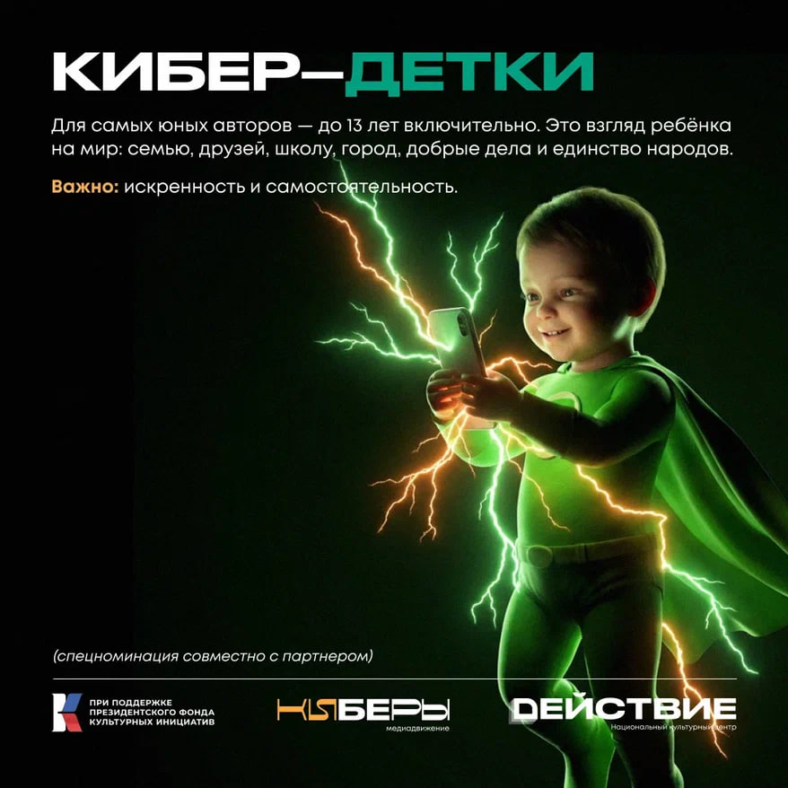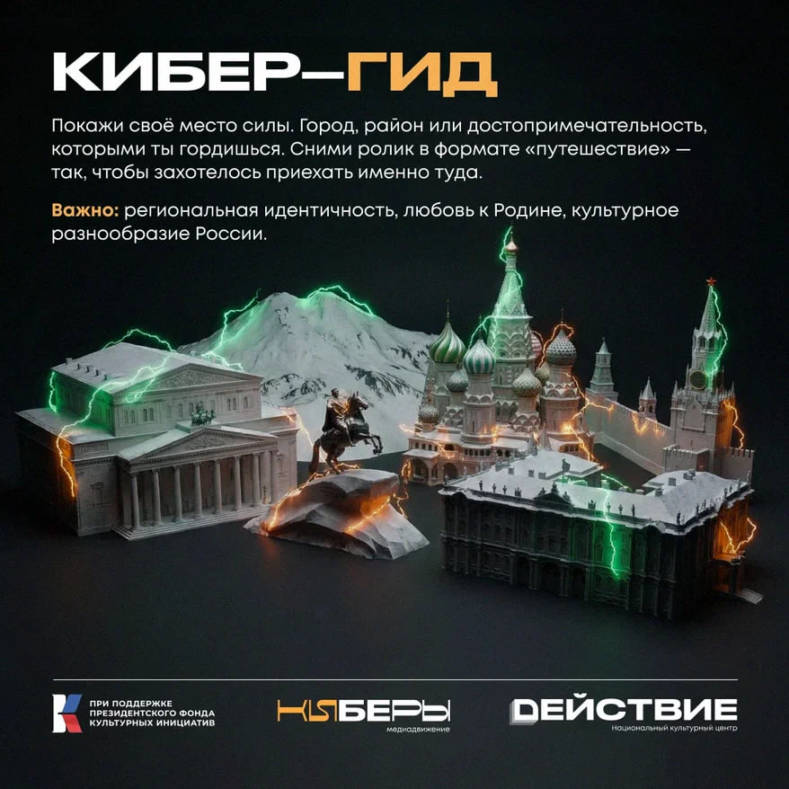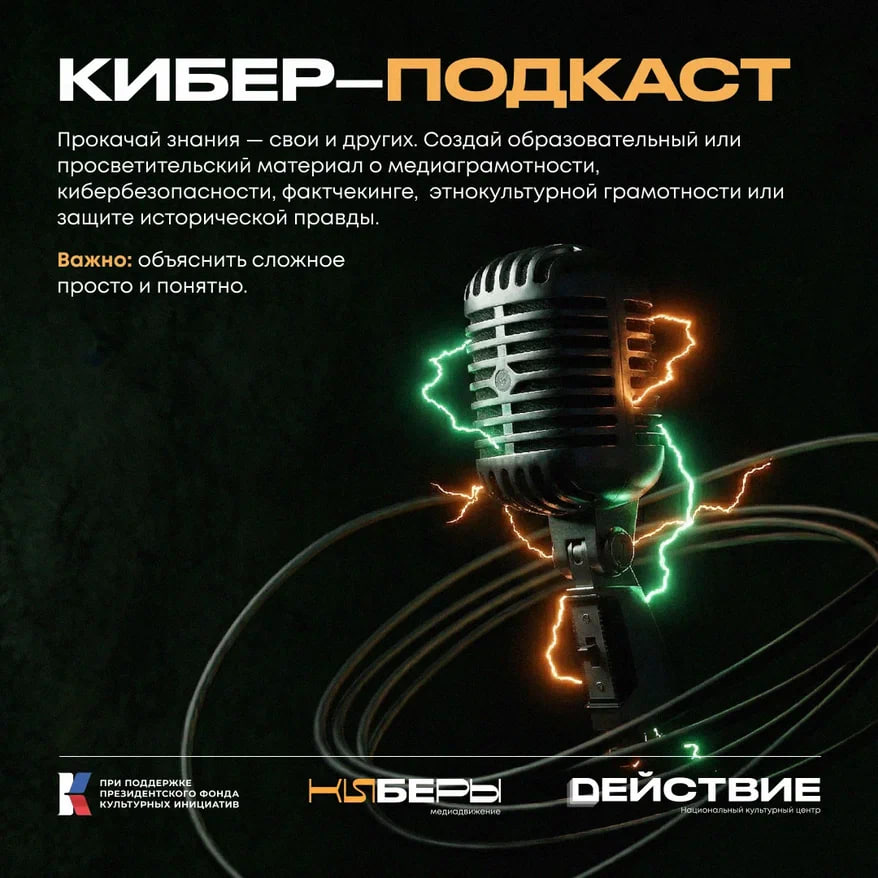 Проект реализуется АНО «НКЦ «Действие» и медиадвижением «КИБЕРЫ» при поддержке ФАДН России и Президентского фонда культурных инициатив.