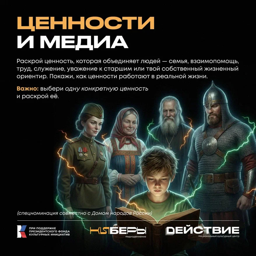 Раскрой ценность, которая объединяет людей — семья, взаимопомощь, труд, служение, уважение к старшим или твой собственный жизненный ориентир. Покажи, как ценности работают в реальной жизни.
