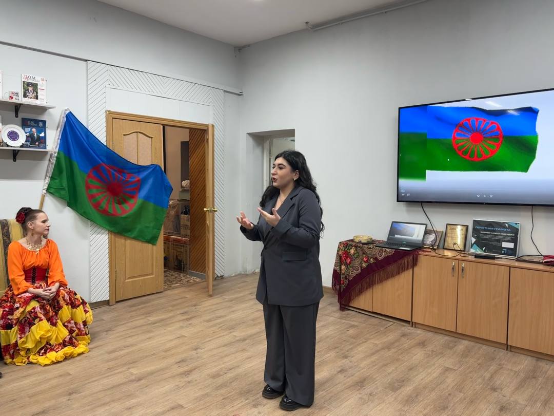 Программа мероприятия включала познавательную лекцию об истории цыганского флага, интересные факты, пословицы и поговорки, а также душевные песни — от задорного «Дану-данай» до проникновенной «Дорогой длинною» — и темпераментные танцы. Яркими выступлениями порадовал коллектив цыганской песни и танца «Д.И.В.А».